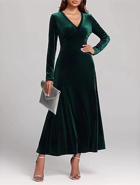 نسائي فستان ميدي اللباس المخملية فستان كوكتيل أنيق موضة الحديث الأماكن المفتوحة مناسب للحفلات ملابس الحفلات والسهرات عادي سهل كم طويل V رقبة أسود أحمر أزرق أخضر داكن الربيع فصل الخريف