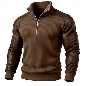 رجالي كنزة قف بجانب الطريق سويت شيرت بسحاب محبوك مضلع بني رقبة طوقية مرتفعة سهل إحزم بقع مكعبات الألوان الرياضة & في الخارج فضفاض مناسب للبس اليومي أناقة الشارع كوول ملابس رياضية ربيع & الصيف ملابس