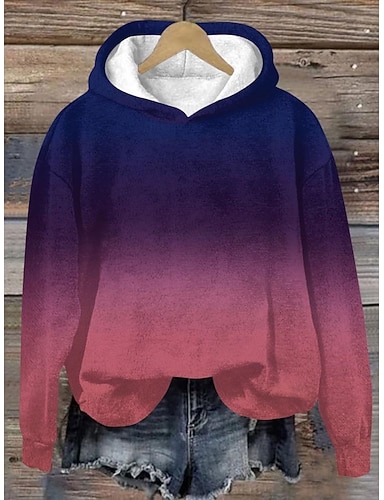 نسائي كنزة صوفية الرسم أناقة الشارع كاجوال كم طويل مع قبعة قمصان عادية شارع مناسب للعطلات جيب طباعة نبيذ أزرق البحرية أزرق أرجواني رمادي الخريف الشتاء