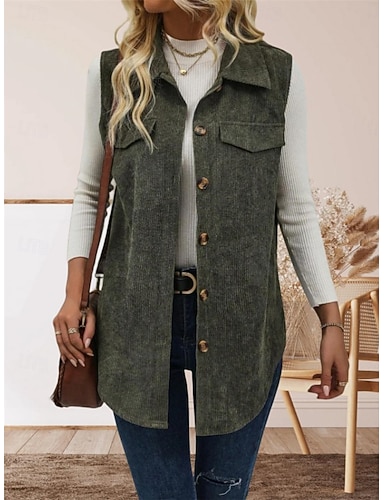 نسائي سترة الأماكن المفتوحة شارع مناسب للبس اليومي الخريف الشتاء عادية معطف عادي الدفء متنفس أنيق كاجوال جاكتس بدون كم لون الصلبة مع جيوب أخضر داكن كاكي