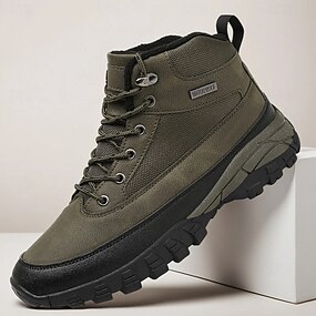 حذاء رجالي للمشي لمسافات طويلة في الهواء الطلق ذو رقبة عالية مع تصميم برباط ونعل مضاد للانزلاق ودعم للكاحل ونمط رحلات غير رسمي للتخييم والتسلق والارتداء اليومي