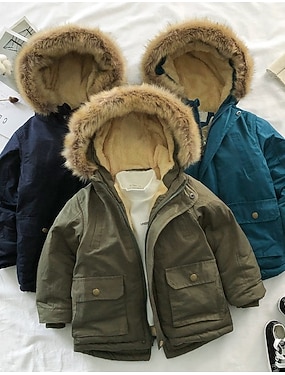 للجنسين للصبيان للفتيات 3D 平织 معطف بطانة فرو كم طويل الخريف الشتاء نشيط أساسي قطن أطفال 2 ل 6 سنوات شارع عطلة عادي