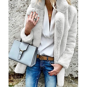 نسائي معطف الدفء مريح طوق الفراء كاجوال سهل مناسب للخارج كاجوال / يومي الأمام مفتوح طويلة طوي عادي كم طويل ملابس خارجية أبيض وردي بلاشيهغ أحمر الخريف الشتاء