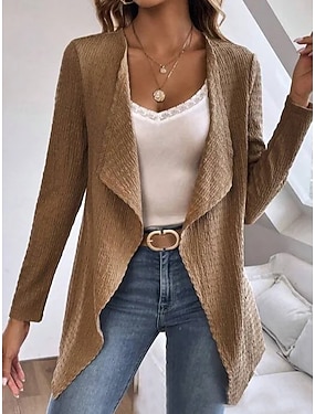 نسائي جاكيت شتوي المكتب شارع الخريف الشتاء عادية معطف عادي الدفء متنفس أنيق كاجوال جاكتس كم طويل سهل قياس نحيف بني