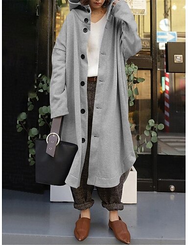 نسائي معطف الدفء مريح Buttons جيب موضة حلو سهل شارع مناسب للبس اليومي كاجوال / يومي عطلة نهاية الاسبوع صدر فردي طويلة طوي عادي كم طويل ملابس خارجية كوفي الخريف الشتاء