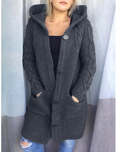 نسائي جاكيت كاجوال الدفء مريح Buttons موضة الخارج سهل مناسب للخارج عطلة نهاية الاسبوع صدر فردي عادية مع قبعة عادي كم طويل ملابس خارجية أسود وردي بلاشيهغ بني الخريف الشتاء