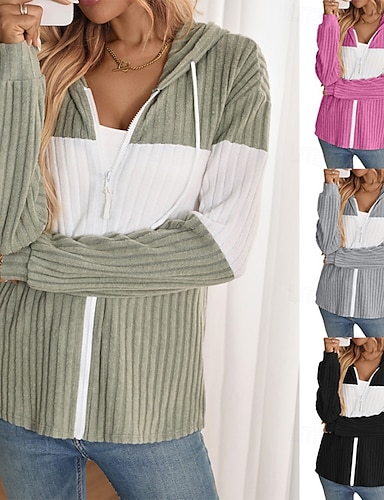 نسائي سترة هوديي مريح بقع سحاب كاجوال ألوان متناوبة مناسب للخارج عطلة نهاية الاسبوع سحاب عادية مع قبعة عادي كم طويل ملابس خارجية أسود أخضر فاتح القرمزي الخريف الشتاء