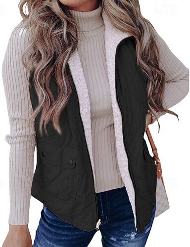 نسائي سترة الدفء مريح سحاب كاجوال سهل مناسب للعطلات مناسب للبس اليومي سحاب عادية مرتفعة عادي بدون كم ملابس خارجية زهري فاتح أسود أحمر الخريف الشتاء