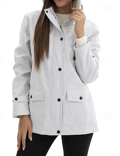 نسائي جاكيت كاجوال سترات المطر المقاومة للماء ومعاطف المطر مقاوم للماء ضد الهواء سحاب جيب موضة الخارج سهل مناسب للخارج عطلة نهاية الاسبوع سحاب عادية مع قبعة عادي كم طويل ملابس خارجية أسود أبيض أزرق