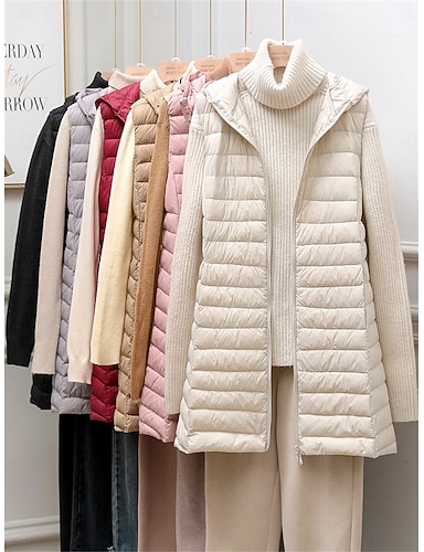 نسائي سترة نفخ الدفء متنفس سحاب جيب كاجوال سهل عطلة شارع مناسب للبس اليومي مناسب للخارج سحاب طويلة هودي عادي بدون كم ملابس خارجية أسود وردي بلاشيهغ البيج الخريف الشتاء