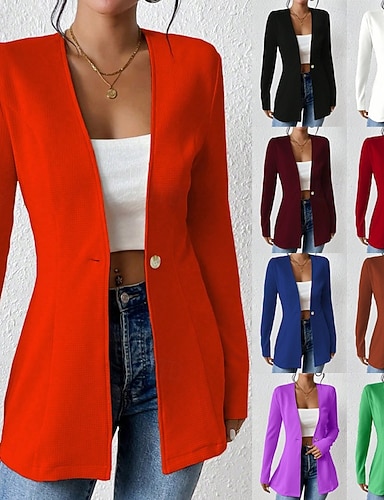 نسائي سترة عمل أزرار لون الصلبة متنفس نمط OL عادي ملابس خارجية كم طويل الخريف برتقالي M