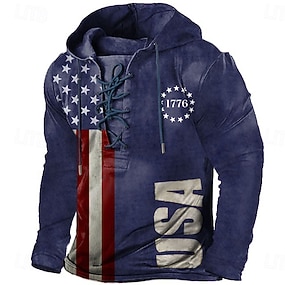 رجالي علم الولايات المتحدة الأمريكية قبعة كنزات بقبعة كنزة موضة كوول كم طويل مع قبعة أزرق رباط الخريف الشتاء مصمم