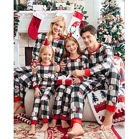 نظرة العائلة منامة مخطط المنزل طباعة أبيض أحمر أخضر كم طويل نشيط ملابس مطابقة