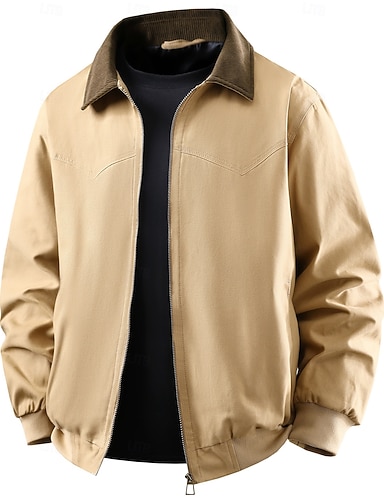 جاكيت ديترويت رجالي رسمي، مناسب للمنزل، جيب تكتيكي، بسيط، ربيعي، خريفي، لون سادة، نشط، عتيق، ياقة قميص، جاكيت عادي أسود، بني، كاكي