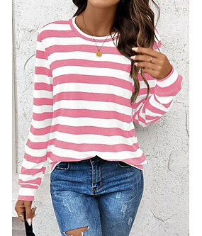 نسائي كنزة صوفية الرسم مخطط كاجوال كم طويل رقبة عالية مدورة قمصان عادية المنزل شارع مناسب للبس اليومي طباعة وردي بلاشيهغ الصيف الربيع الخريف الشتاء