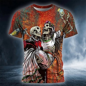 رجالي جماجم تي شيرت كم قصير تي شيرت طباعة ثلاثية الأبعاد رقبة عالية مدورة قميص قوطي الرعب مناسب للحفلات شارع فضفاض أزرق بحيرة أصفر أحمر الصيف الربيع كل الفصول ملابس S M L XL XXL XXXL 4XL