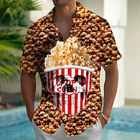 Halloween رجالي جماجم 3D طباعة الفشار قميص قميص صيفي زر حتى القميص كم قصير الطراز القوطي الداكن الأماكن المفتوحة عطلة مناسب للبس اليومي الصيف الربيع طوي طباعة ثلاثية الأبعاد قميص بياقة جيب أمامي واحد