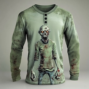 رجالي Halloween الزومبي قميص هينلي كم طويل موضة لطيف يوميا الهالووين فضفاض مناسب للعطلات الخريف ربيع & الصيف أخضر هينلي تي شيرت هنلي