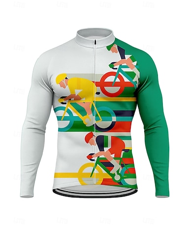 رجالي كنزات جورسيه الدراجة الرسم هندسي الدراجة كم طويل الدراجة جورسيه قمم مع 3 جيوب خلفية الشمس حماية الشمس واقي شمسي سريع جاف رياضات أخضر ملابس