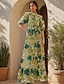 A-الخط طول الأرض منفوش الزي الرسمي أنيق زهري كم قصير رقبة عالية مدورة حفلة في الحديقة زفاف جيبة ساتان مع طباعة الأزهار جيبة