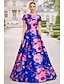 A-الخط طول الأرض فساتين السهرة أنيق زهري كم قصير V رقبة حفلة في الحديقة زفاف حزام / وشاح ساتان ظهر درابيه مع طباعة الأزهار جيبة