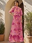 A-الخط طول الأرض فساتين السهرة أنيق زهري حريري نصف كم