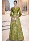 A-الخط طول الكعب فساتين متنوعه أنيق زهري 3/4 الكم V رقبة زفاف رسمي قماش الجاكار مع طباعة الأزهار طيات