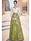 A-الخط طول الأرض فساتين السهرة أنيق عتيق مكعبات الألوان كم طويل V رقبة حفلة في الحديقة زفاف جيبة نايلون قماش الجاكار مع طباعة الأزهار انقسام جيبة