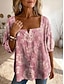 نسائي بلوزة طباعة ورد الرسم يوميا أنيق أساسي نصف كم رقبة مربعة قمصان عادية مناسب للبس اليومي أصفر وردي بلاشيهغ أرجواني برتقالي الصيف الربيع