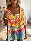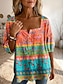 نسائي قميص بوهو بلوزة طباعة ورد عتيق يوميا كاجوال كم طويل V رقبة قمصان عادية مناسب للبس اليومي مناسب للعطلات أزرق أصفر أحمر أرجواني فوشيا الصيف الربيع الخريف