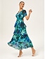 نسائي انثى لباس غير رسمي فستان طويل ماكسي أزرق أخضر كم قصير النباتية الصيف الربيع V رقبة أنيق XS S M