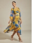 فستان ماكسي نسائي من الشيفون بطبعة زهور تجريدية شفاف متدفق غير رسمي وجهة زفاف ضيف عطلة سفر منتجع ربيع وصيف خريف