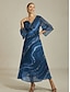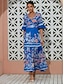 نسائي انثى لباس غير رسمي فستان طويل ماكسي أزرق ملكي بدون كم النباتية طبع الصيف V رقبة العطلة بوهيميان XS S M