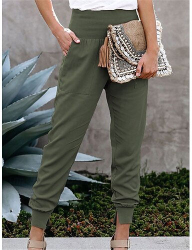نسائي سراويل موضة طويل سهل جيوب جانبية تصميم الرباط المرن التنفس إمكانية مريح مرن نسبياً كاجوال / يومي أسود أزرق بني أخضر للربيع والصيف عادي
