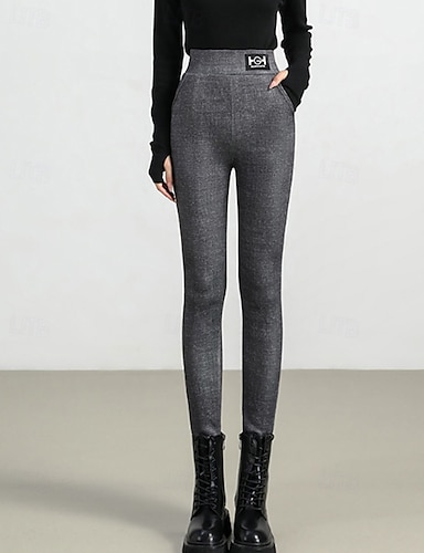 نسائي بنطلون طماق مبطنة بالصوف المريح أناقة الشارع كاجوال مكتمل الطول ارتفاع متوسط سهل مرونة الخصر مريح شارع مناسب للعطلات مناسب للبس اليومي أرجواني داكن رمادي غامق رمادي أسود 1 # الشتاء عادي