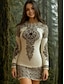 نسائي فستان طويل فستان شكل حرف A لباس صيفي أنيق العطلة كاجوال عادي الرسم هندسي كم طويل رقبة عالية مدورة أبيض الربيع الخريف الشتاء