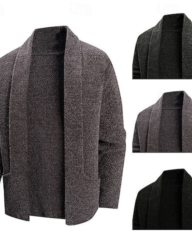 رجالي سترة سترة رسمية سترة من صوف محبوك سترة متماسكة مضلع متماسكة قمصان عادية محبوك مضلع سهل ياقة شال عتيق موضة فضفاض مناسب للبس اليومي ملابس الخريف الشتاء رمادي M L XL