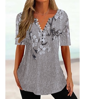 نسائي تي شيرت الرسم أساسي كم قصير V رقبة قمصان عادية مناسب للبس اليومي عطلة نهاية الاسبوع Buttons مقصوص طباعة وردي بلاشيهغ أزرق أخضر كاكي رمادي