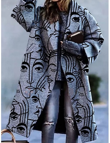 نسائي معطف شتوي الأماكن المفتوحة شارع مناسب للبس اليومي الخريف الشتاء طويلة معطف عادي الدفء متنفس أنيق كاجوال جاكتس كم طويل مخطط ومنقوشة مع جيوب طباعة نبيذ كوفي رمادي