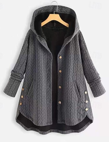 نسائي معطف شتوي الدفء مريح جيب حياكة موضة يوميا سهل الأماكن المفتوحة فضفاض مناسب للبس اليومي صدر فردي طويلة مع قبعة عادي كم طويل ملابس خارجية أسود أصفر رمادي الربيع الخريف