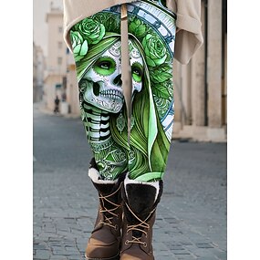 Leggings نسائية لعطلات بأسلوب عتيق ، بطول الكاحل ، خصر عالٍ ، مطبوع عليها رسم جمجمة ثلاثي الأبعاد ، سريع الجفاف ، تنفس ، ناعم ومرن ، رسمي للخارج للعطلات ، باللون الأحمر والبنفسجي والبرتقالي والأخضر
