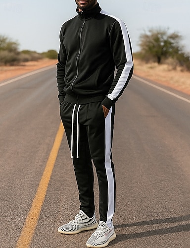 رجالي بدلة رياضية بذلة الهرولة مجموعات بدلات رياضية افتح السحاب ألوان متناوبة أطقم ملابس رياضية خريف & شتاء أسود أصفر الخارج السفر رياضات دافئ كم طويل رياضة ألبسة رياضية مرن نسبياً عادي