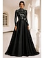 A-الخط طول الأرض مطرز بالخرز فستان رسمي فستان والدة العروس فساتين السهرة منفوش الزي الرسمي أنيق عتيق التألق كم طويل رقبة عالية زفاف رسمي جيبة ساتان مخمل مع بريق
