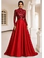 A-الخط طول الأرض فساتين السهرة منفوش الزي الرسمي أنيق كم طويل قبعة القميص رسمي مناسب للعطلات جيبة ساتان دانتيل مع تطريز