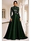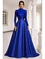 A-الخط طول الأرض مطرز بالخرز فستان رسمي فستان والدة العروس فساتين السهرة منفوش الزي الرسمي أنيق حريري 3/4 الكم رقبة عالية مدورة زفاف رسمي جيبة ساتان ستان مطاطي مع بريق شريطة جيبة