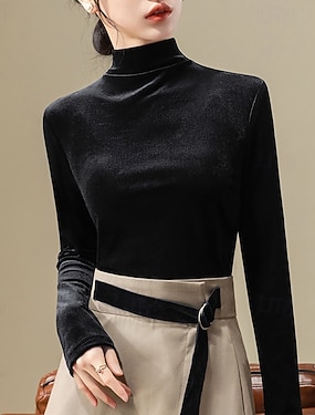 نسائي مخمل أنيقة متأنق بلوزة لون الصلبة سهل أنيق يوميا كم طويل رقبة عالية قمصان عادية مناسب للبس اليومي مناسب للعطلات مناسب للخارج أسود أحمر أرجواني أخضر رمادي الخريف الشتاء