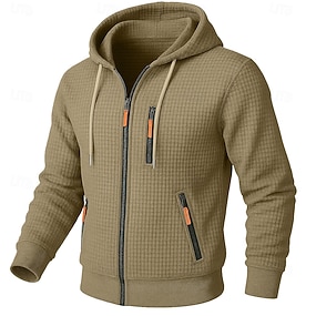 رجالي هوديي هودي بسحاب كامل هوديي التكتيكية أحمر الخمر أزرق البحرية رمادي فاتح رمادي غامق كوفي مع قبعة سهل سحاب متعدد الجيب الرياضة & في الخارج فضفاض مناسب للبس اليومي أناقة الشارع كوول ملابس رياضية