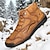 حذاء شتوي مبطن بالفرو بني للرجال - حذاء دافئ مقاوم للماء مصنوع من الجلد الصناعي مع سحاب للإغلاق للمغامرات الخارجية