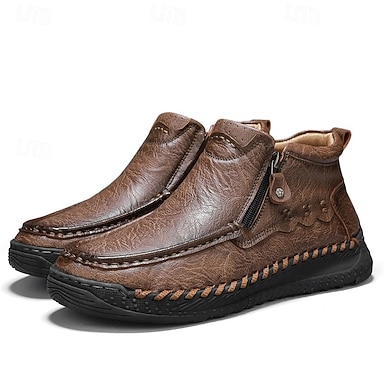 رجالي كتب محبوك أحذية جلدية أحذية مصنوعة يدويا أحذية الراحة رياضي كلاسيكي كاجوال الأماكن المفتوحة مناسب للبس اليومي جلد المواد التركيبية الدفء مصنوع يدوي غير الانزلاق البوط القصير / بوط الكاحل