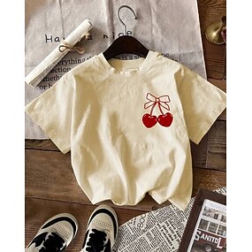 للفتيات 3D قلب تي شيرت كنزة مطبوعة كم قصير الصيف الربيع موضة أساسي أطفال 4-12 سنة رقبة العمل الأماكن المفتوحة فضفاض مناسب للبس اليومي عادي